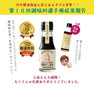 燻製だし醤油がしょうゆ部門【最優秀賞】&総合【2位】を受賞しました!(みたらしろっぷは甘み部門【入賞】)